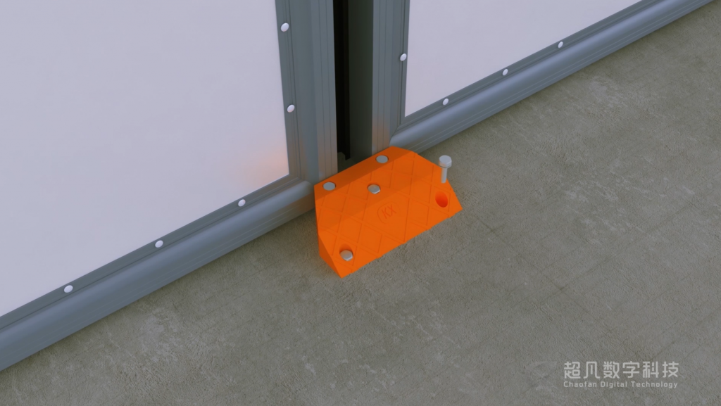 五:固定下導(dǎo)向輪,確保門體在運行過程中下導(dǎo)向門邊始終包含導(dǎo)向輪做直線運動。