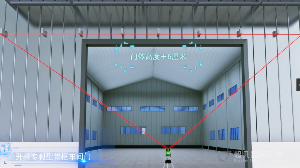 二:使用紅外水平儀測平,門體高度+6厘米是固定軌道的最下線